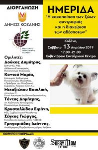 Ο Δήμος Κοζάνης και το Γεωτεχνικό Επιμελητήριο Κοζάνης/ Παράρτημα Δυτικής Μακεδονίας σας προσκαλούν σε ημερίδα με θέμα «Η κακοποίηση των ζώων συντροφιάς και η διαχείριση των αδέσποτων».