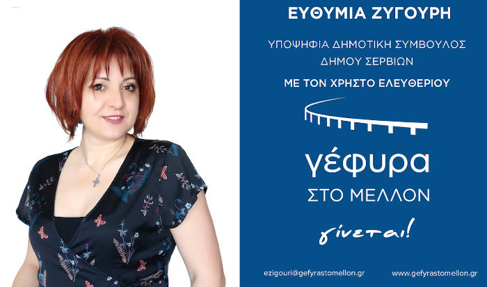 Σας παρουσιάζουμε τρεις ακόμη νέους υποψηφίους του συνδυασμού μας ΓΕΦΥΡΑ ΣΤΟ ΜΕΛΛΟΝ του υποψηφίου Δημάρχου Σερβίων Χρήστου Ελευθερίου.