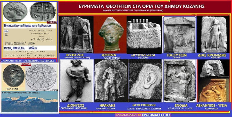 Σε αυτό το πρώτο μέρος αναφερόμαστε στους δώδεκα θεούς και για τις περιπτωσεις και για ότι πληροφορηθήκαμε για την παρουσία τους σε αρχαιολογικά ευρήματα στην πόλη της Κοζάνης και σε ακτίνα 15 χιλιομέτρων από αυτή ,,ακόμη θα δίναμε πληροφοριες για τον Διόνυσο ένα μικρότερό θεό που πέρα από τα ευρήματα θα τον συναντήσουμε και στην Ελληνική μυθολογία να έχει σχέση του με τους Τυριννούς του προελληνικού λαού και βασιλείου που πρώτευσα του ήταν η Τύρισσα κατά τον Στ.Βυζάντιο .