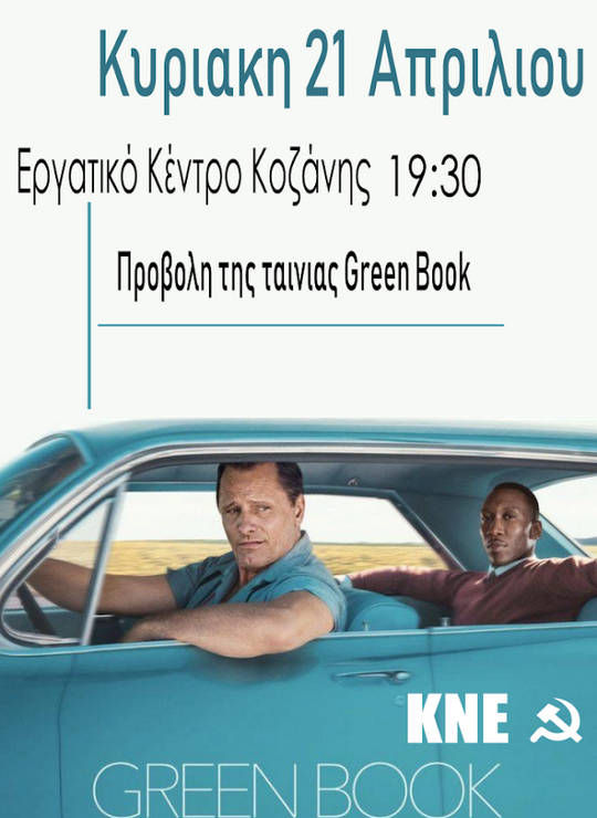 Πολιτικά 20/04/2019 Προβολή της ταινίας Greenbook από την ΚΝΕ στο Εργατικό Κέντρο Κοζάνης 0 Η Τομεακή Οργάνωση Κοζάνης της ΚΝΕ διοργανώνει προβολή της ταινίας Greenbook την Κυριακή 21 Απριλίου στις 19:30 , στο Εργατικό Κέντρο Κοζάνης.