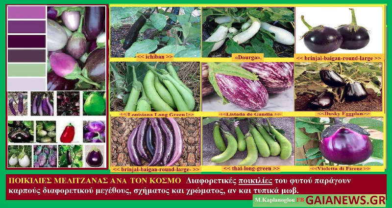 Ένα μεγάλο φάσμα σχημάτων, μεγεθών και χρωμάτων από μελιτζάνες καλλιεργούνται στον κόσμο και βεβαίως, μικρότερο στην Ελλάδα.
