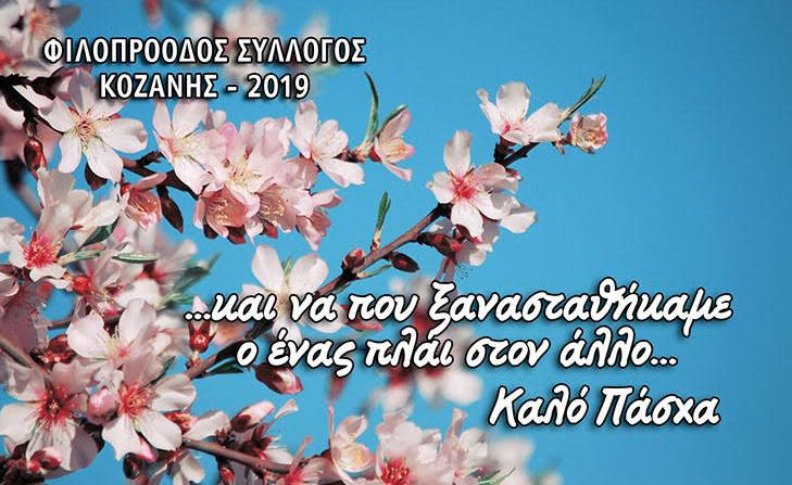 Ο Φιλοπρόοδος Σύλλογος Κοζάνης, μετά την ολοκλήρωση της κοινωνικής του δράσης με την προσφορά των πασχαλινών δεμάτων για έκτη χρονιά εξασφαλίζοντας αξιοπρεπώς το γιορτινό τραπέζι σε 130 και πλέον οικογένειες που ζουν δίπλα μας, οφείλει να αποδώσει τα εύσημα στους πρωταγωνιστές αυτής της πρωτοβουλίας, που είναι οι ανώνυμοι ευαισθητοποιημένοι πολίτες, φίλοι και μέλη του Συλλόγου, αλλά και επαγγελματίες που δραστηριοποιούνται στην πόλη και την περιοχή μας.