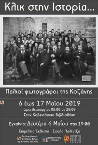 Μια σημαντική έκθεση φωτογραφιών, πολύτιμη συνεισφορά στην τοπική ιστορία, θα φιλοξενήσει η Κοβεντάρειος Δημοτική Βιβλιοθήκη Κοζάνης από τις 6 μέχρι και τις 17 Μαΐου 2019.
