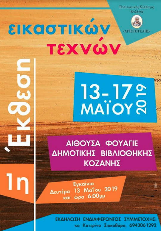 Ο Πολιτιστικός Σύλλογος «ΑΡΙΣΤΟΤΕΛΗΣ» Κοζάνης, σε συνεργασία με καλλιτέχνες περιοχής μας, διοργανώνει Έκθεση Εικαστικών Τεχνών.