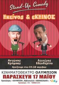 Η επιτυχημένη παράσταση stand – up comedy «Εκείνος & Εκείνος» για μία μοναδική μέρα στην Κοζάνη, στο κινηματοθέατρο ΟΛΥΜΠΙΟΝ, την Παρασκευή 17 Μαϊου, ώρα 21.30