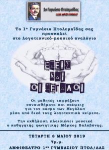 Το 1ο Γυμνάσιο Πτολεμαΐδας σας προσκαλεί στο λογοτεχνικό-μουσικό αναλόγιο