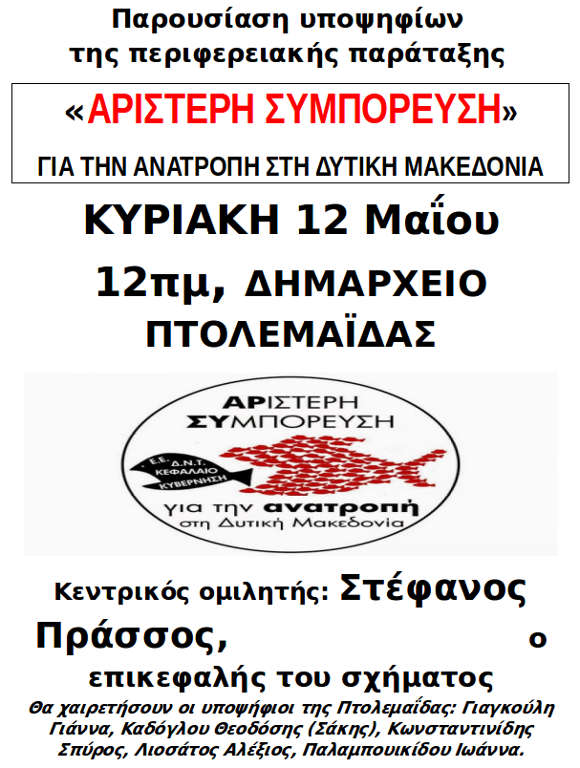 Παρουσίαση υποψηφίων της περιφερειακής παράταξης «Αριστερή Συμπόρευση» του Στέφανου Πράσσου στην Πτολεμαΐδα