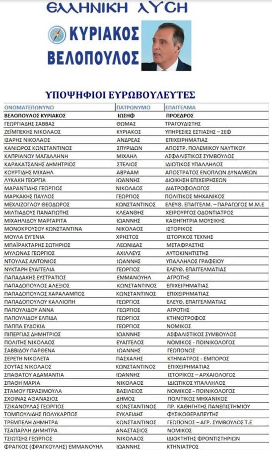 Το ψηφοδέλτιο της ΕΛΛΗΝΙΚΗΣ ΛΥΣΗΣ