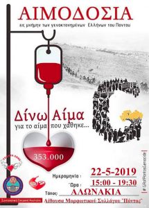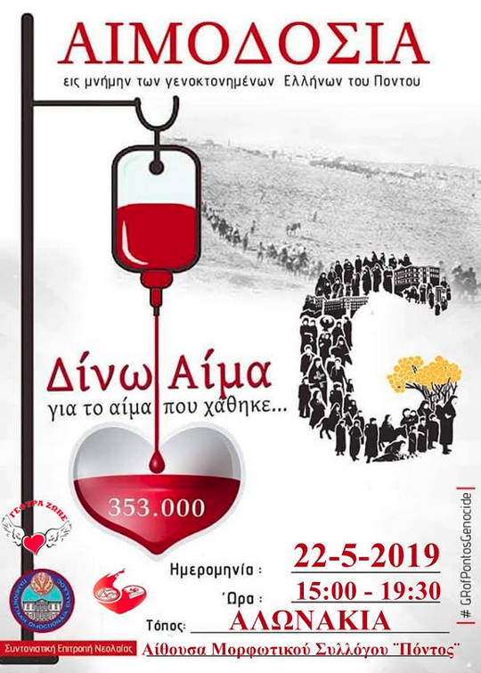 «Δίνω Αίμα, για το Αίμα που χάθηκε… στη μνήμη των γενοκτονημένων Ελλήνων του πόντου».