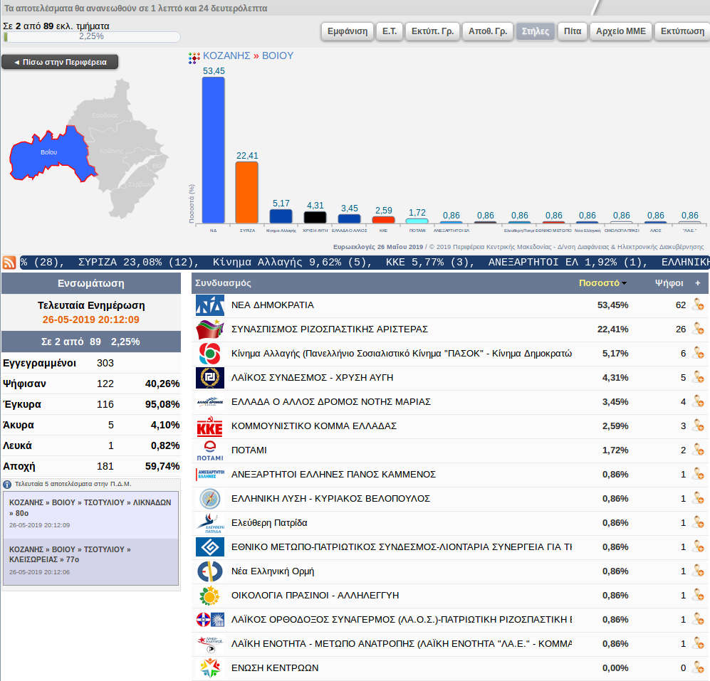 Εκλογές 2019 26/05/2019 Τα πρώτα εκλογικά αποτελέσματα για τις Ευρωεκλογές από 2 εκλογικά τμήματα του Βοΐου 0 Τα πρώτα εκλογικά αποτελέσματα για τις Ευρωεκλογές από 2 εκλογικά τμήματα του Βοΐου. Κλικ στην εικόνα για μεγέθυνση:
