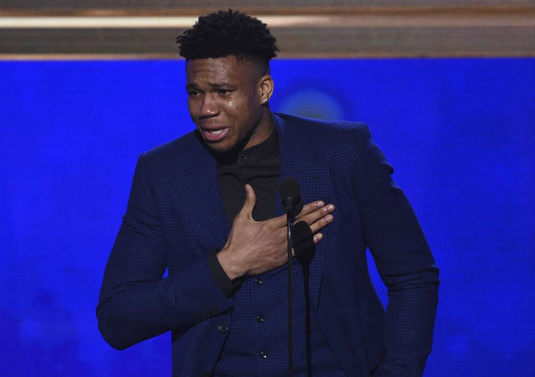 Ο «Greek Freak», παίρνοντας στα χέρια του το βραβείο από τον Κομισάριο του ΝΒΑ, Άνταμ Σίλβερ, λύγισε και έβαλε τα κλάματα, βγάζοντας έναν συγκινητικό λόγο.