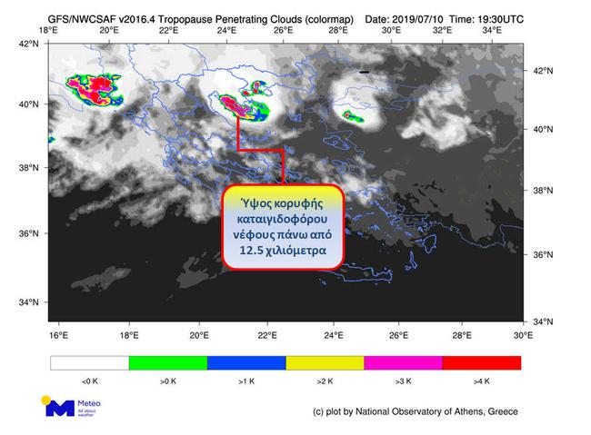 Καταιγίδες τόσο μεγάλης οριζόντιας και κατακόρυφης ανάπτυξης και έντονης κεραυνικής δραστηριότητας, συνδέονται με ισχυρότατους ανέμους και καταστροφικά αποτελέσματα, όπως αυτά που δυστυχώς έζησε η Χαλκιδική το βράδυ της Τετάρτης 10/07/2019.
