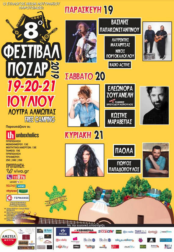 Εισιτήρια σε Viva.gr https://www.viva.gr/tickets/festival/loutra-almopias/8o-festival-pozar19/?fbclid=IwAR3JwHx2Fs0ALlQzo7XvVjoLAOphLcepB81rRF1pjngH2jGRXrfg74_J5cc