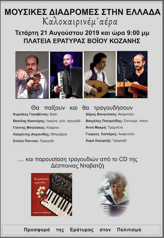 Βόιο 20/08/2019 Γλέντι στην Εράτυρα Βοΐου προς τιμή των απόδημων Ερατυραίων 0 Μαγικές μουσικές στιγμές θα απολαύσουν, την Τετάρτη 21 Αυγούστου στην όμορφη πλατεία της Εράτυρας,όσοι παρευρεθούν στο γλέντι με τον Κυριάκο Γκουβέντα στο βιολί και άλλους ξακουστούς μουσικούς. Η εκδήλωση είναι προς τιμή των απόδημων Ερατυραίων.