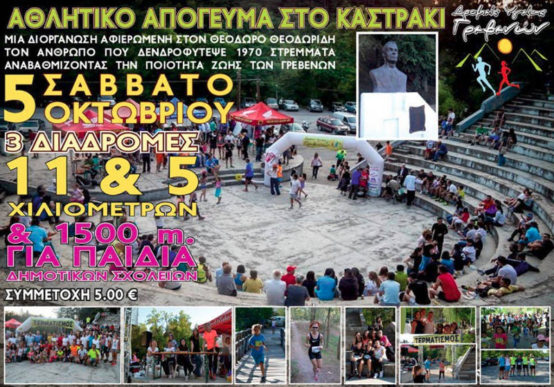 Το Αθλητικό Απόγευμα στο Καστράκι είναι μια διοργάνωση που από φέτος είναι αφιερωμένη στον αείμνηστο δάσκαλο και ευεργέτη των Γρεβενών Θεόδωρο Θεοδωρίδη που δενδροφύτευσε 1970 στρέμματα με πεύκα και ακακίες, αναβαθμίζοντας την ποιότητα ζωής των Γρεβενών.