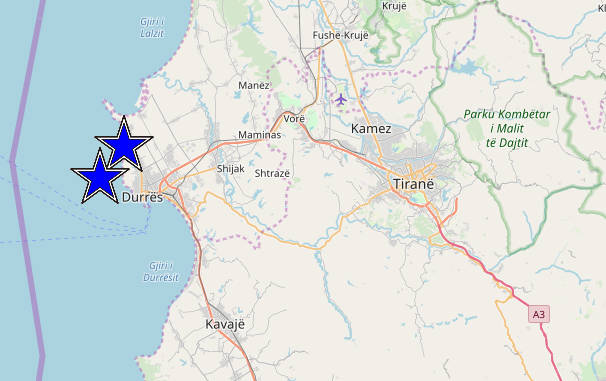 Το επίκεντρο του δεύτερου σεισμού είναι στην ίδια περιοχή του Δυρραχίου, από τα πρώτα στοιχεία όμως δεν φαίνεται να είναι σε θαλάσσια περιοχή.