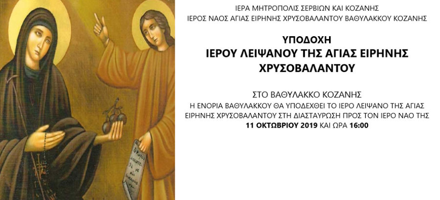Υποδοχή του Ιερού Λειψάνου της Αγίας Ειρήνης Χρυσοβαλάντου στο Βαθύλακκο Κοζάνης