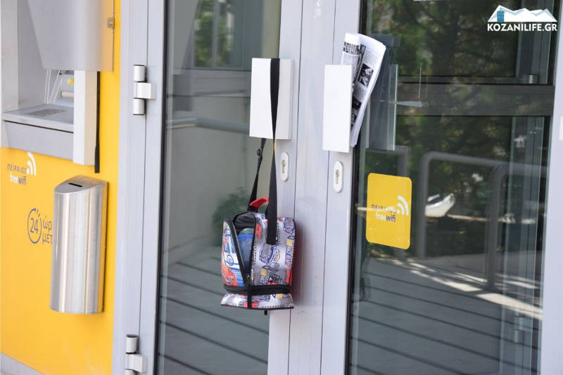 Άγνωστος εγκατέλειψε μία τσάντα στο εξωτερικό τμήμα της πόρτας της Τράπεζας Πειραιώς, επί της οδού 11ης Οκτωβρίου στην Κοζάνη.