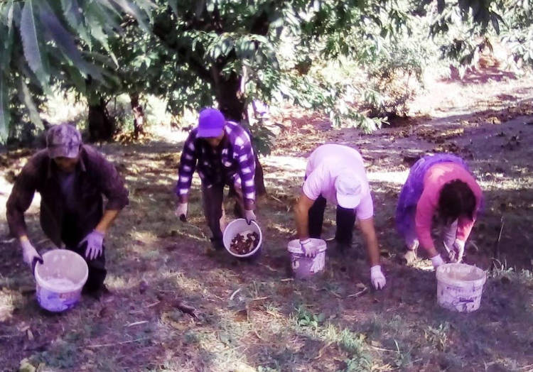 Το μάζεμα δεν είναι εύκολη εργασία, καθώς το έδαφος έχει μεγάλη κλίση και συλλέγεται από το «τζιουνάτο» χαλί της κάθε καστανιάς. Για αυτό και οι φωνές, τα πειραχτά και τα καλαμπούρια είναι απαραίτητα και όπως λέει και ο Γιώργος Πολυχρός «Η κουβέντα – κουβέντα και η δουλειά – δουλεία», που μόλις έφτασε στο κτήμα, για να φορτώσει τα σακιά στο αγροτικό και να τα κατεβάσει στο διαλογητήριο που βρίσκεται στην Σκοτίνα. Εκεί γίνεται ο διαχωρισμός με βάση το μέγεθος, αλλά και τα γερά από τα σχισμένα. Τα σχισμένα πάνε άμεσα για να μας δώσουν τα ψημένα κάστανα, ένα από τα υγιεινότερα σνάκ για μικρούς και μεγάλους. Τα γερά πάνε για τα ψυγεία ώστε να χρησιμοποιηθούν αργότερα.