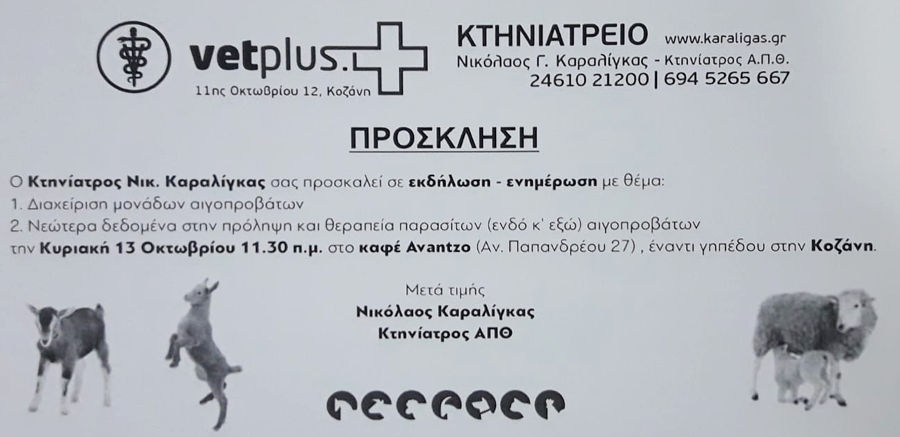 Ο Κτηνίατρος Νικόλαος Καραλίγκας σας προσκαλεί σε εκδήλωση – ενημέρωση με θέμα: