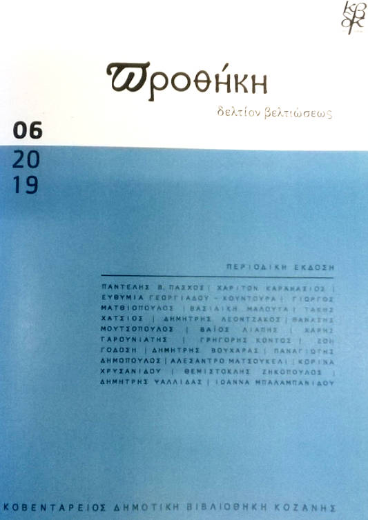 Πλούσιο σε ύλη, ενδιαφέρουσα όπως πάντα, κυκλοφόρησε το 6ο τεύχος της “Προθήκης”, η περιοδική έκδοση της Κοβενταρείου Δημοτικής Βιβλιοθήκης Κοζάνης, ή αλλιώς το “δελτίον βελτιώσεως”.