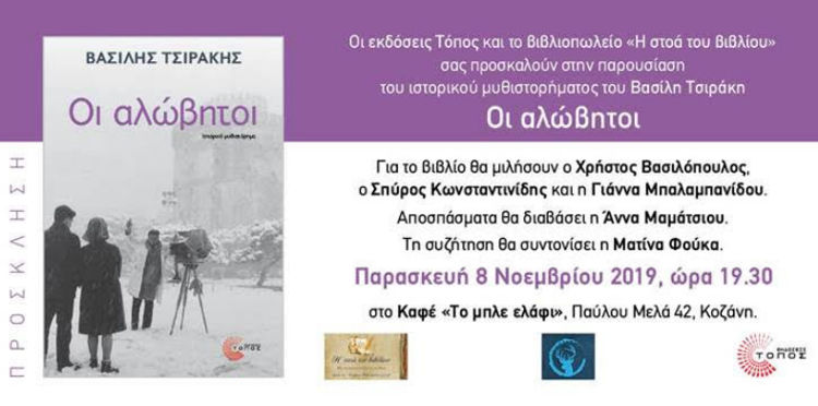 Παρασκευή 8 Νοεμβρίου 2019, ώρα 19.30, στο καφέ «Το Μπλε Ελάφι»