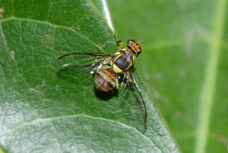 Το έντομο, που έχει πολύ μεγάλο εύρος ξενιστών μεταξύ των οποίων συγκαταλέγονται τα πορτοκάλια, τα ροδάκινα, τα δαμάσκηνα, τα αχλάδια, τα μήλα, οι τομάτες, οι πιπεριές, οι μπανάνες, τα μάνγκο και η παπάγια, απαντάται σε αρκετές περιοχές της Ασίας και έχει αναφερθεί και στις ΗΠΑ. Στην Ευρώπη διαπιστώθηκε η παρουσία του για πρώτη φορά σε οπωρώνες της Καμπανίας, αν και κάθε έτος καταγράφονται πολλές απορρίψεις σε εισαγόμενα φορτία φρούτων λόγω της παρουσία του σε αυτά.