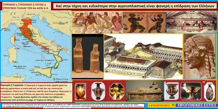 Επισημάναμε μάλιστα ,ότι οι Ετρούσκοι ξεχώριζαν από τους άλλους κατοίκους της γύρω , διότι είχαν, εντελώς, άλλο πολιτισμό ,μιλούσαν γλώσσα που έμοιαζε με των Ελλήνων και οι ναοί τους και τα αγγεία τους δεν διέφεραν από αυτά των Ελλήνων”