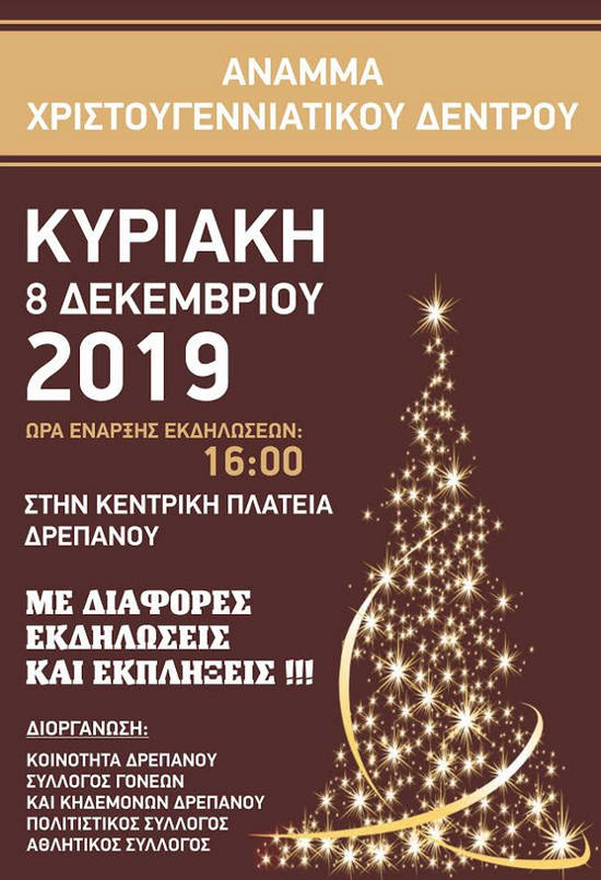 Ανάβει το Χριστουγεννιάτικο δέντρο της η Τ.Κ. Δρεπάνου.