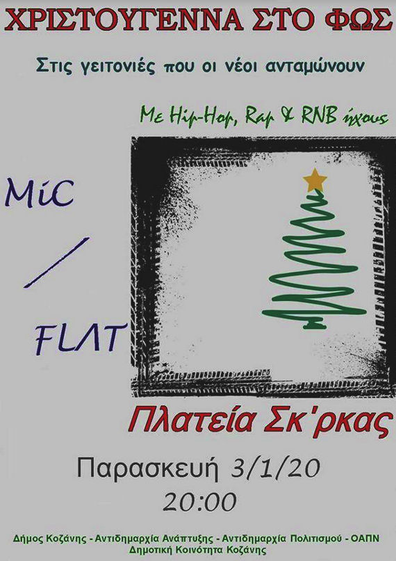 Ο Δήμος Κοζάνης, η Αντιδημαρχία Ανάπτυξης, η Αντιδημαρχία Πολιτισμού, η Κοινότητα Κοζάνης και ο Οργανισμός Αθλητισμού – Πολιτισμού & Νεολαίας Δήμου Κοζάνης, διοργανώνουν στο πλαίσιο του προγράμματος «Χριστούγεννα στο Φως», μουσική εκδήλωση με τίτλο «Στις γειτονιές που οι νέοι ανταμώνουν».