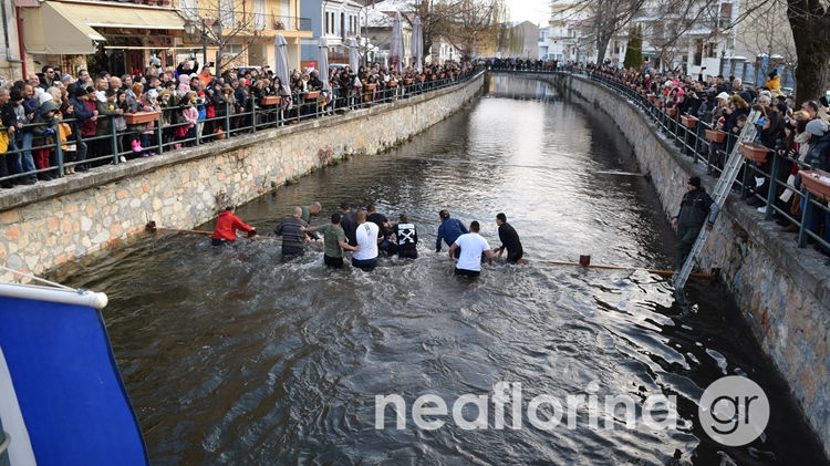 Αρκετοί ήταν και αυτοί που βούτηξαν στα παγωμένα νερά για να ανασύρουν τον Τίμιο Σταυρό, ο οποίος βρέθηκε τελικά μετά από δύο ώρες, καθώς είχε κολλήσει κάτω από μία πέτρα.