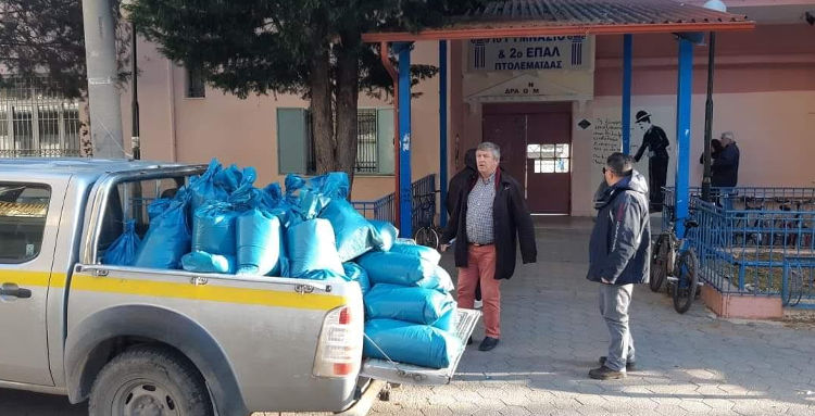 Πιο συγκεκριμένα ο εντεταλμένος σύμβουλος Πολιτικής Προστασίας Κοσμάς Σιδηρόπουλος και υπάλληλοι του Δήμου, παρέδωσαν αλάτι σε συσκευασίες τσουβαλιού στους διευθυντές κάθε σχολικής μονάδας της Εορδαίας. Συνολικά το επόμενο τριήμερο θα διανεμηθούν περίπου 6,5 τόνοι αλατιού στα σχολεία όλων των βαθμίδων εκπαίδευσης που βρίσκονται στην Πτολεμαΐδα και σε όλες τις Κοινότητες του Δήμου Εορδαίας.