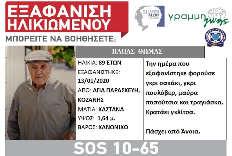 Εάν γνωρίζετε κάτι επικοινωνήστε με την υπηρεσία Silver Alert, όλο το 24ωρο, στην Εθνική Γραμμή SOS 1065.