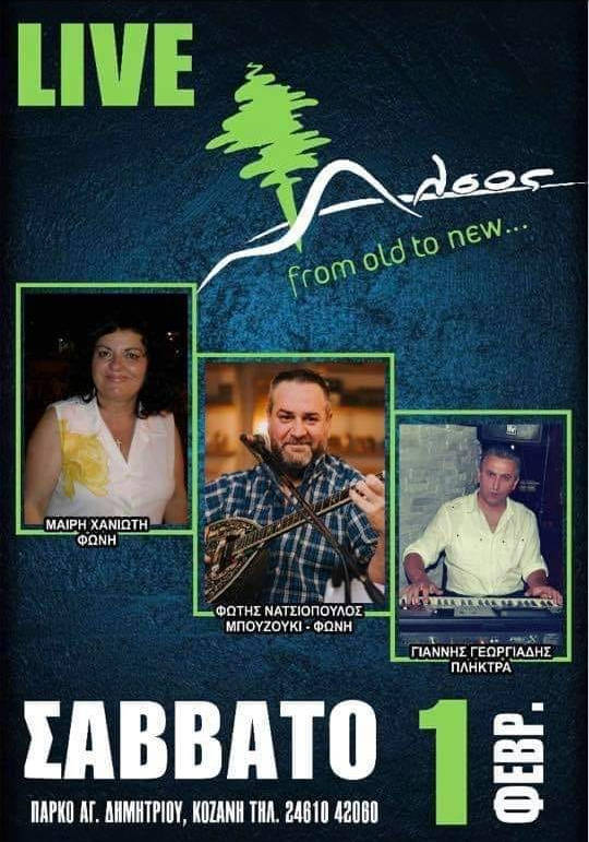 Ψυχαγωγία - Διασκέδαση 01/02/2020 Ζωντανή βραδιά με τον Φώτη Νατσιόπουλο, την Μαίρη Χανιώτη και τον Γιάννη Γεωργιάδη στο Άλσος στην Κοζάνη 0 Μια μοναδική live βραδιά με τον Φώτη Νατσιόπουλο, την Μαίρη Χανιώτη και τον Γιάννη Γεωργιάδη θα έχουν την ευκαιρία να απολαύσουν όσοι βρεθούν το βράδυ του Σαββάτου 1 Φεβρουαρίου στο Άλσος Wine Bar στην Κοζάνη.