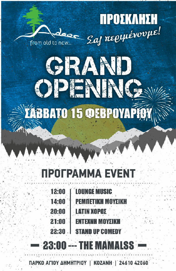 Δείτε το πρόγραμμα του Grand Opening στο Άλσος το Σάββατο 15 Φεβρουαρίου: