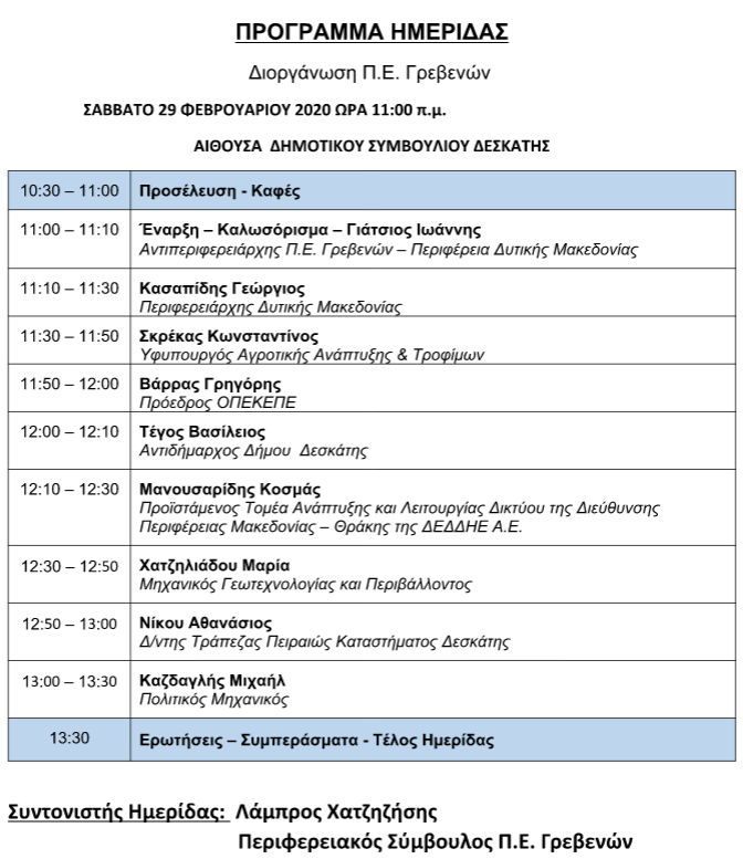 Ημερίδα στη Δεσκάτη παρουσία του Υφυπουργού Αγροτικής Ανάπτυξης Κ. Σκρέκα για την αξιοποίηση των ΑΠΕ