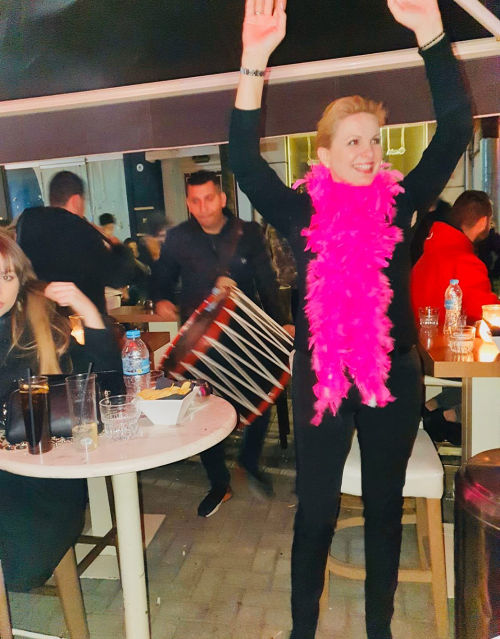 Η Μάγδα Τσέγκου με το νεόνυμφο ζευγάρι, διασκέδασαν στους ρυθμούς των χάλκινων και έδειξαν να το απολαμβάνουν με την ψυχή τους.