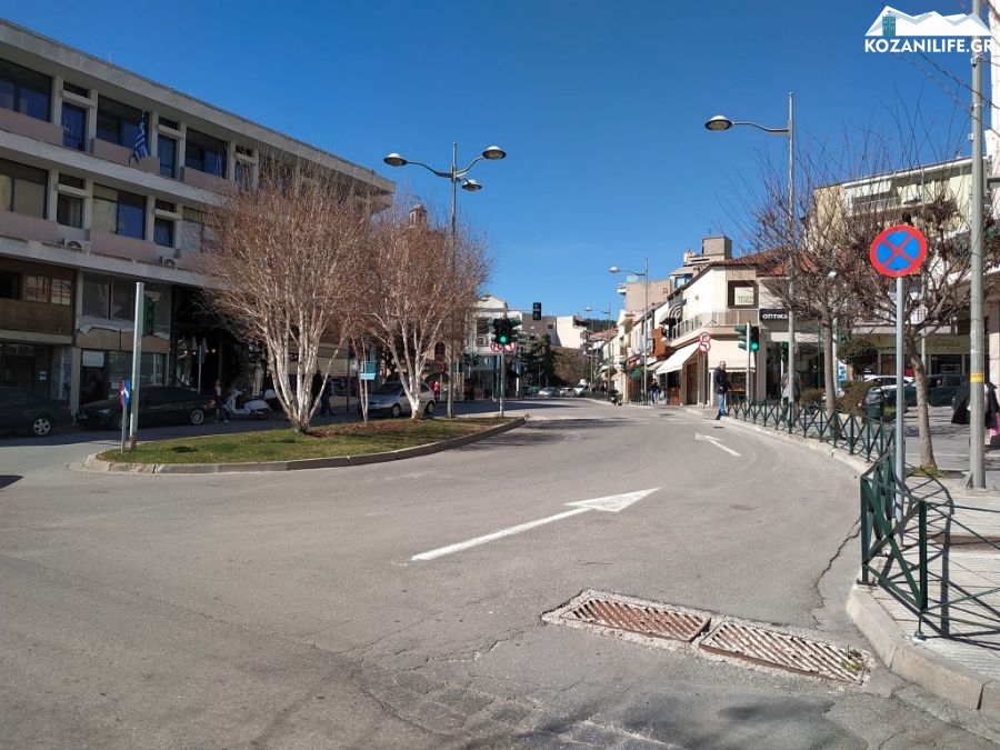 Μειωμένη κατακόρυφα η κίνηση που σημειώθηκε στους δρόμους της Κοζάνης σε ώρα αιχμής, το μεσημέρι της Παρασκευής 13 Μαρτίου 2020. Υπό άλλες συνθήκες η πόλη θα έσφυζε από κίνηση Παρασκευή μεσημέρι λίγο πριν το κλείσιμο της αγοράς.