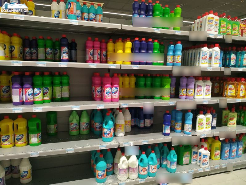 Μηδενική είναι η διαθεσιμότητα σε όλα τα απολυμαντικά και αντισηπτικά είδη, αφού εξαντλήθηκαν από νωρίς. Επίσης, έλλειψη παρατηρήθηκε σε διάφορα καθαριστικά είδη και γάντια μιας χρήσης. Για τα συγκεκριμένα είδη έχει μπει πλαφόν αγοράς έως τρία προϊόντα ανά καταναλωτή.