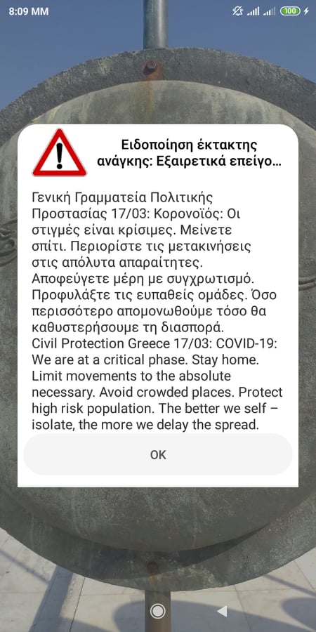 Ένα σχόλιο στο άρθρο “Νέα ειδοποίηση έκτακτης ανάγκης στα κινητά των πολιτών για τον κορονοϊό