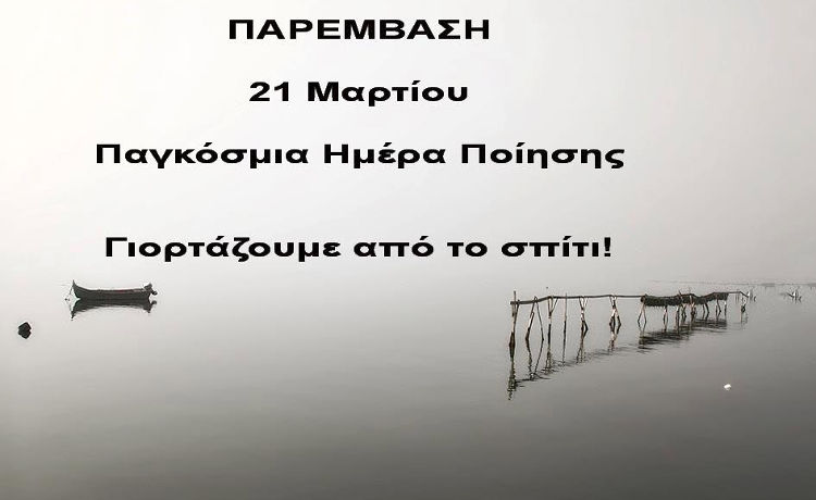 Φέτος η Παρέμβαση θα κάνει μια μικρή διαδικτυακή γιορτή για την Ημέρα Ποίησης. Όποιος το επιθυμεί, μπορεί να στείλει ένα ποίημα (δικό του ή όχι) στο paremvasiculture@yahoo.com ή στο inbox του προφίλ FB: https://www.facebook.com/dimitra.karayianni.1