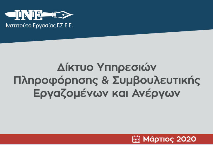 Στο πλαίσιο λειτουργίας των εξ αποστάσεως υπηρεσιών πληροφόρησης του Δικτύου Πληροφόρησης και Συμβουλευτικής Υποστήριξης και Ενδυνάμωσης Εργαζομένων και Ανέργων και με αφορμή τα έκτακτα και προσωρινά μέτρα που έλαβε η κυβέρνηση για την αντιμετώπιση και τον περιορισμό διάδοσης του νέου κορονοϊού, τα οποία επηρεάζουν άμεσα τις εργασιακές σχέσεις δημιουργώντας εύλογες απορίες και προβληματισμούς για τον τρόπο εφαρμογής τους, σας αποστέλλουμε κείμενο πληροφόρησης της ενότητας «Εργασιακά Θέματα» με τίτλο «Ρυθμίσεις για τους εργαζόμενους: Κατεπείγοντα μέτρα προσωρινού χαρακτήρα για την αντιμετώπιση και τον περιορισμό διάδοσης του κορονοϊού”.