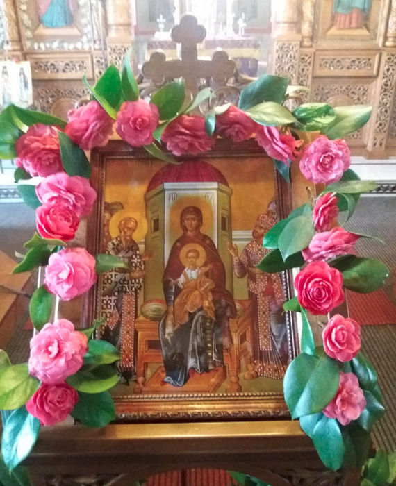 Ο παπάς διάβασε τους Χαιρετισμούς (Άγγελος πρωτοστάτης …. Ω, πανύμνητε Μήτερ …) στο ξύλινο προσκυνηταράκι στο κέντρο του μεσαίου κλίτους, μπροστά στην στολισμένη με ανοιξιάτικα άνθη εικόνα του Ακαθίστου (θερμή ευχαριστήρια προσευχή και ικετευτική φωνή στην Παναγία) εις επήκοον των Αγίων που περιβάλλουν τον Ιερό Ναό, με τη συμμετοχή και των απουσιαζόντων για εύλογη αιτία πιστών, που την ίδια ώρα στα σπίτια τους ευρισκόμενοι, άναψαν κανδήλα και θυμίαμα στο εικόνισμα, στην κατ’ οίκον Εκκλησία, προσευχόμενοι στην Παναγία, επαναλαμβάνοντας το “Υπεραγία Θεοτόκε σώσον ημάς”.