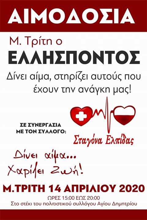 «Σταγόνα Ελπίδας»: Αιμοδοσία τη Μεγάλη Τρίτη στον Ελλήσποντο Κοζάνης.