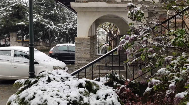 Η βροχή που έπεφτε, τα ξημερώματα έγινε χιόνι πυκνό με αποτέλεσμα όπως βλέπετε στο βίντεο να καλύψει στέγες, δέντρα, αυτοκίνητα.