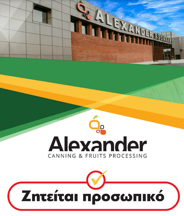 Το κονσερβοποιείο – χυμοποιείο «ΑΛΕΞΑΝΤΕΡ» στη Βέροια ανακοινώνει πως δέχεται αιτήσεις για πρόσληψη εποχιακού προσωπικού Εργάτες/Εργάτριες και Χειριστές Κλαρκ/Βοηθοί Χειριστές Κλαρκ για τη θερινή περίοδο 2020.