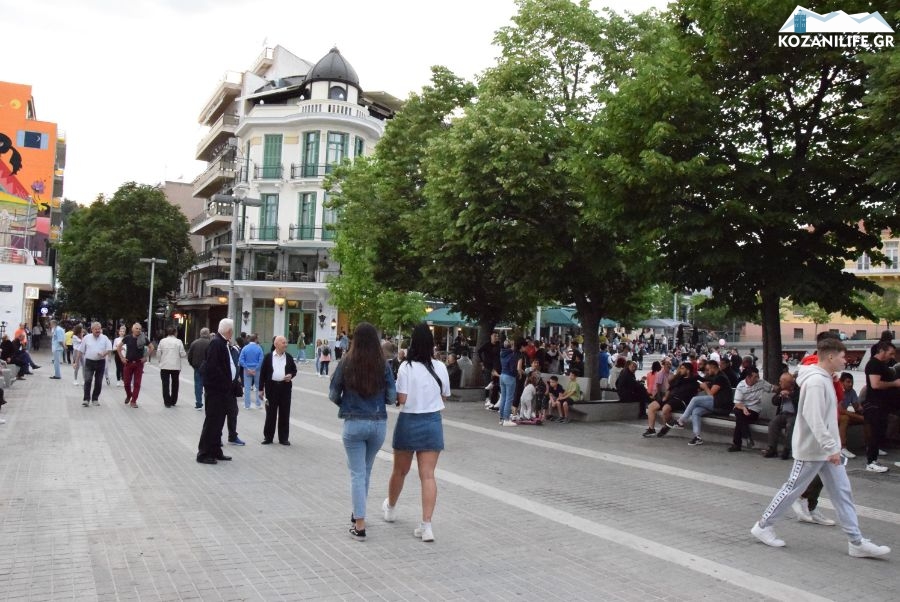 Κυριακή 24 Μαΐου 2020, κατάμεστη από κόσμο η κεντρική πλατεία της Κοζάνης και οι γύρω δρόμοι του κέντρου της πόλης.