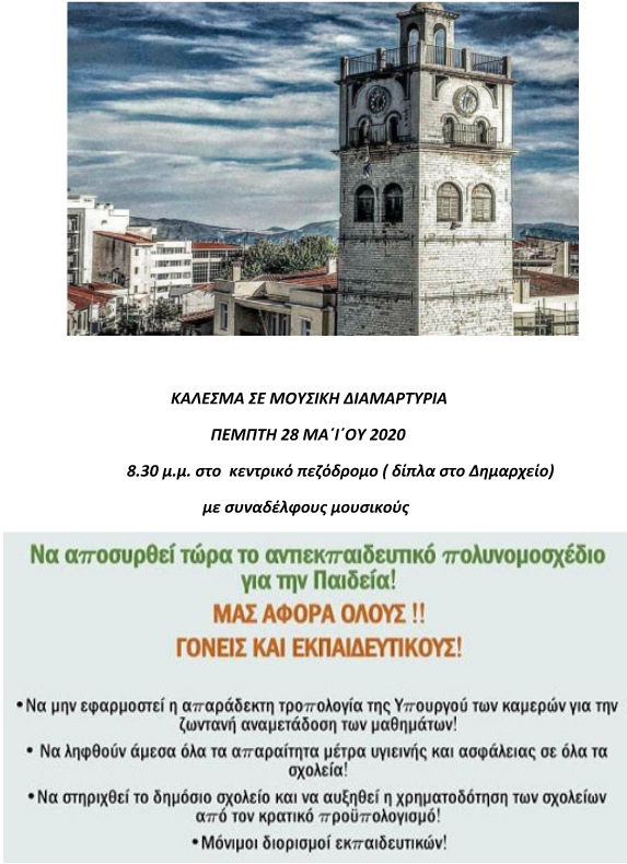 Κοζάνη 27/05/2020 Μουσική διαμαρτυρία των εκπαιδευτικών Α/θμιας στην κεντρική πλατεία Κοζάνης ενάντια στο πολυνομοσχέδιο 1 Μουσική διαμαρτυρία των εκπαιδευτικών Α/θμιας στην κεντρική πλατεία Κοζάνης ενάντια στο πολυνομοσχέδιο