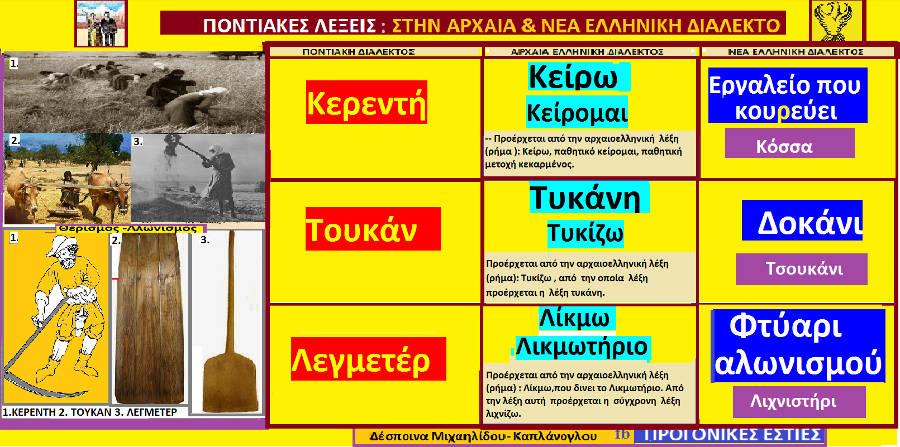 — Το ουσιαστικό ήταν Τυκάνη που αντιστοιχούσε στο εργαλείο για το αλώνισμα το μετέπειτα δοκάνι, ή τσουκάνι.