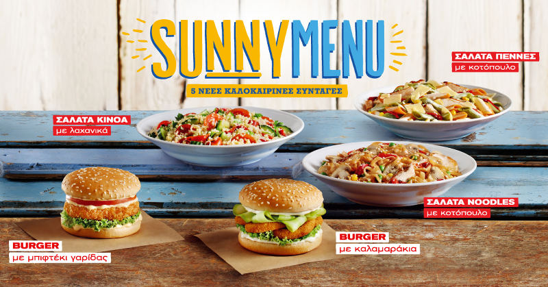 Δοκιμάστε τα δύο νέα burger με μπιφτέκι γαρίδας και καλαμαράκια, καθώς και τις απίστευτα δροσερές σαλάτες κινόα με λαχανικά, noodles με κοτόπουλο και πένες με κοτόπουλο.